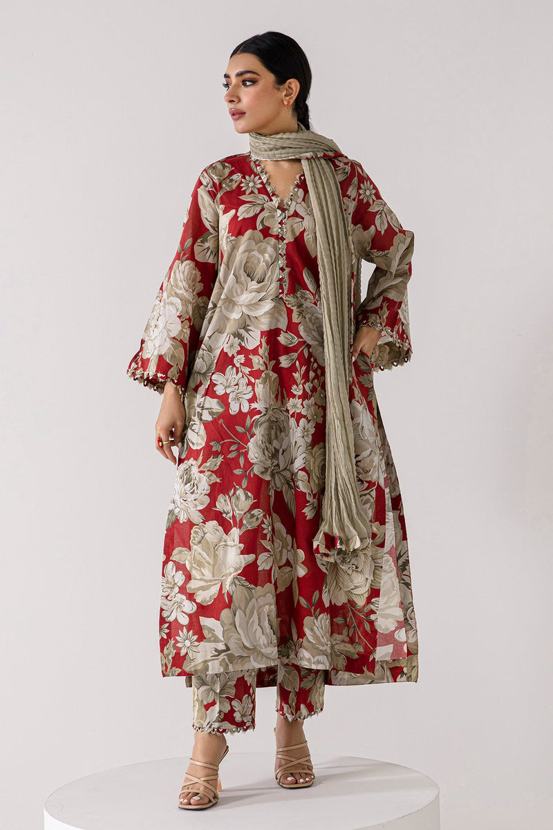 DIGITAL PRINTED EMBROIDERED LAWN SHIRTDYED COTTON TROUSERDIGITAL PRINTED CHIFFON DUPATTAEMBROIDERED 4 SIDED DUPATTA PATCH