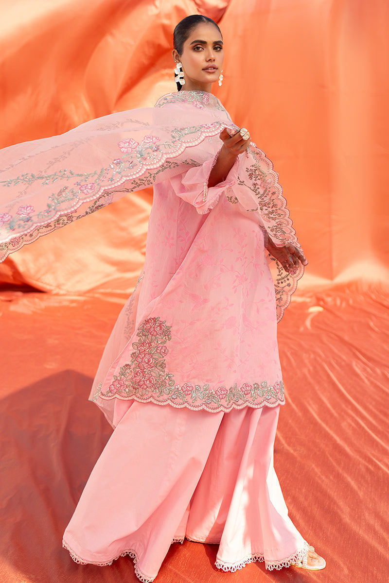 SHIRTEmbroidered front & sleeves (Lawn)Dyed backTROUSERCambric dyed trouserDUPATTAOrganza embroidered dupatta