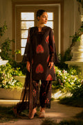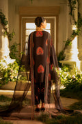 3-Piece Fabric: silk lawn and organza Printed black silk lawn set with self embroidered details enhanced with stone work details and embroidered organza dupatta.